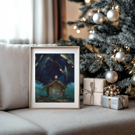 Christmas Nativity Scene Art Print | Religious Christmas Wall Decor